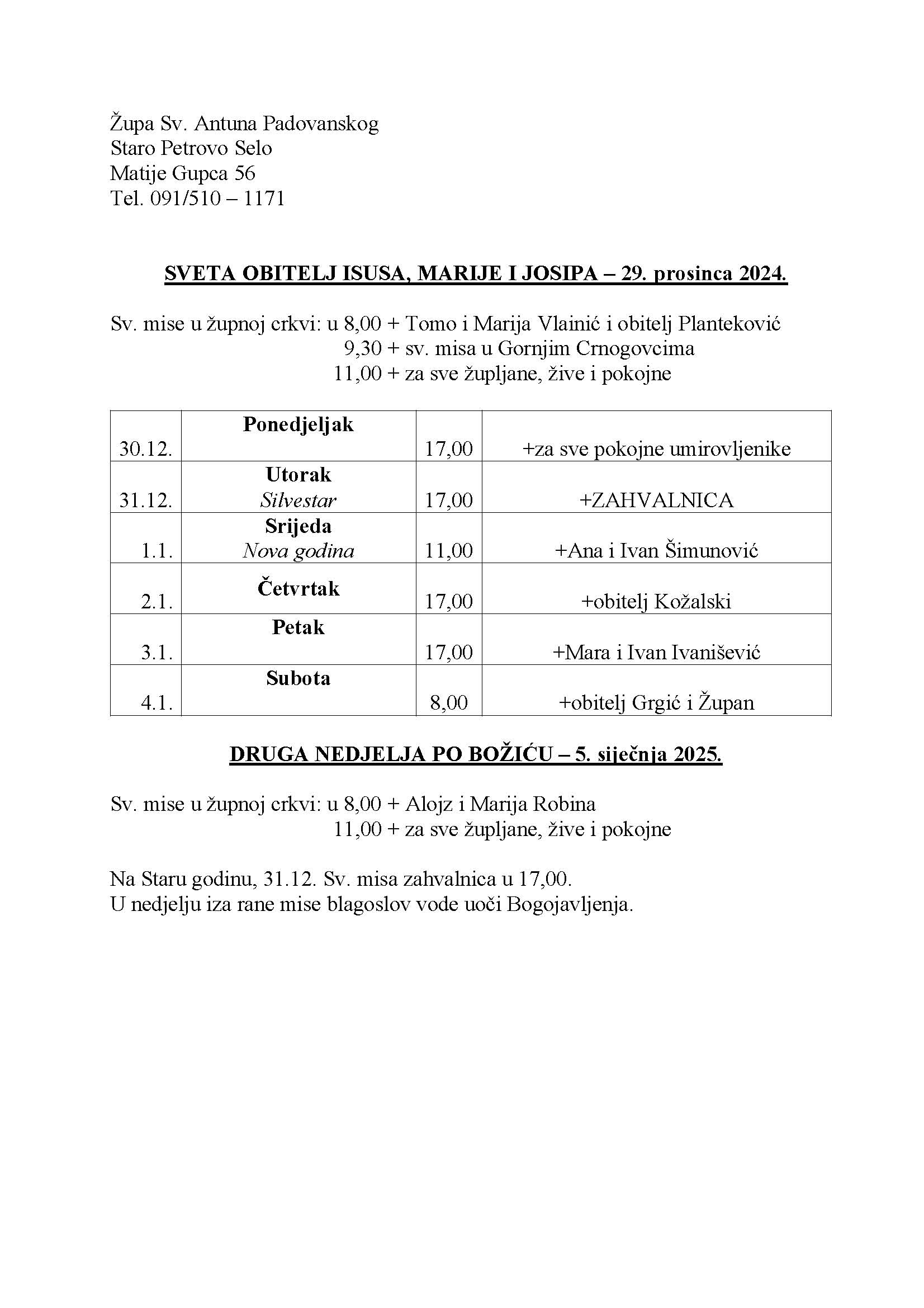 11,00 +za sve župljane, žive i pokojne