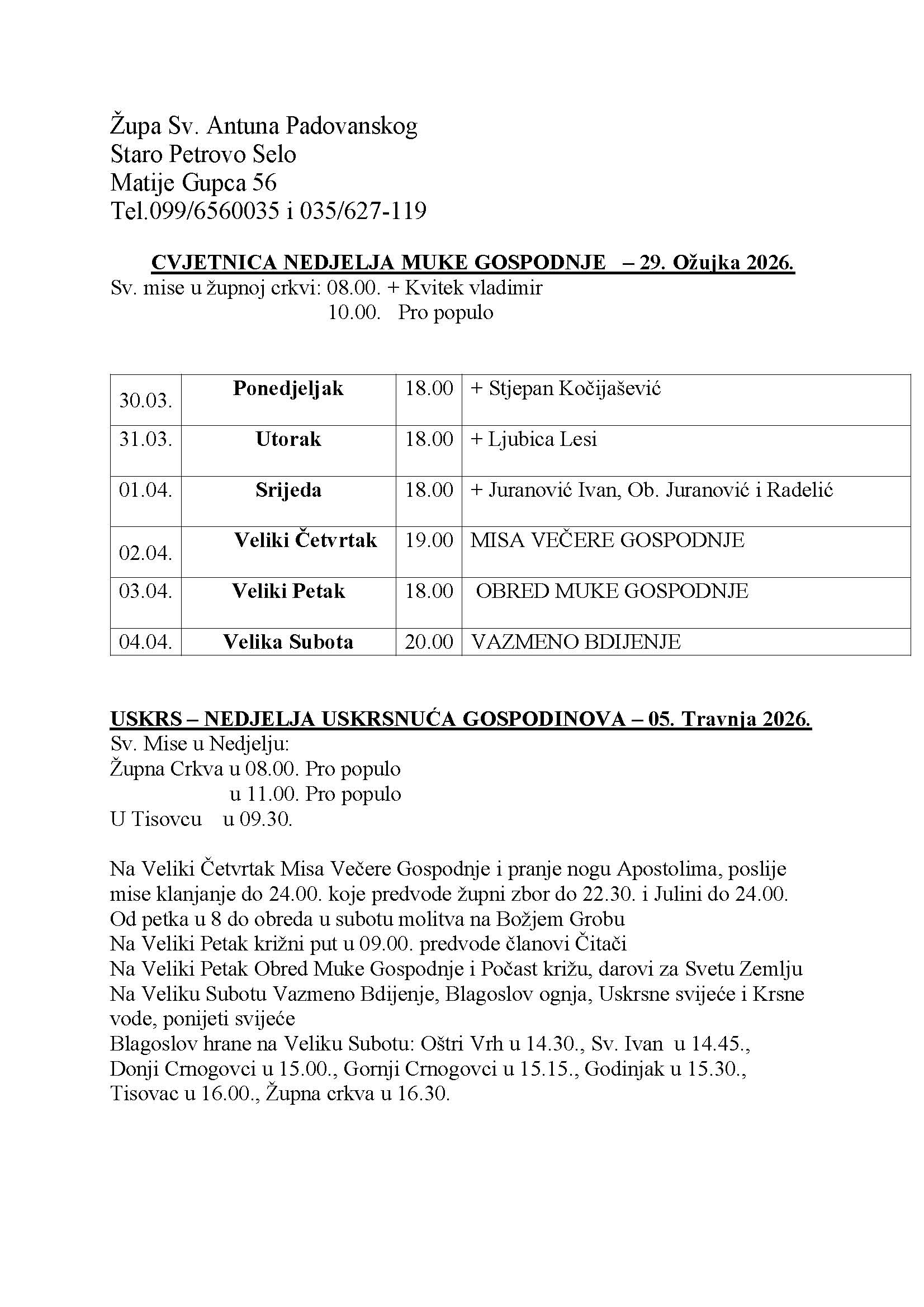 CVJETNICA NEDJELJA MUKE GOSPODNJE – 29. 3. 2026.